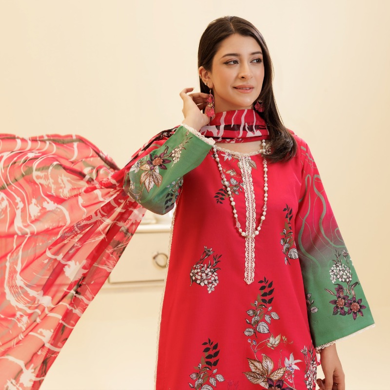 SOFT AS A BLOOMING ROSE AT DAWN, THIS PASTEL PINK ENSEMBLE EXUDES DELICATE CHARM THE GENTLE HUES OF THE COMPLEMENTING DURATTA ADD IN ETHEREAL TOUCH, MAKING DREAMY CHOICE FOR ANY OCCASION