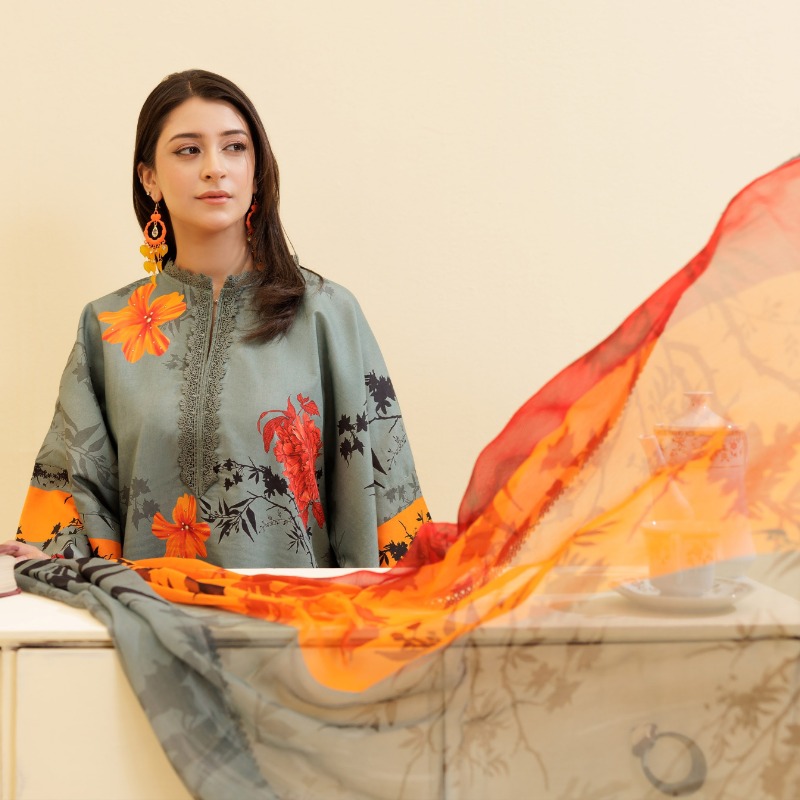 ROOTED IN HERITAGE, THIS BROWN ENSEMBLE WEAVES TRADITION INTO EVERY THREAD, THE INTRICATE PRINT ON THE SHIRT PAYS HOMAGE TO AGE-OLD CRAFTSMANSHIP, WHILE THE COMPLEMENTING DUPATTA ADOS A TOUCH OF EARTHY ELEGANCE