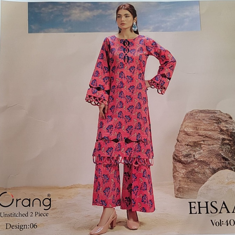 Elevate your everyday wardrobe with this stunning 2-piece unstitched suit from the Orang Ehsaas Vol: 40 collection. Crafted from high-quality Printed Premium Lawn, this outfit offers a breathable, lightweight feel perfect for the summer season.