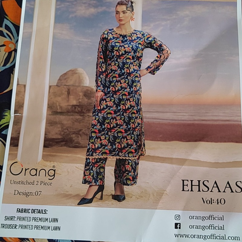 Step out in style with this gorgeous 2-piece unstitched suit from the Orang Ehsaas Vol: 40 collection. Made from high-quality Printed Premium Lawn, this fabric is perfectly lightweight and breathable for warm weather.