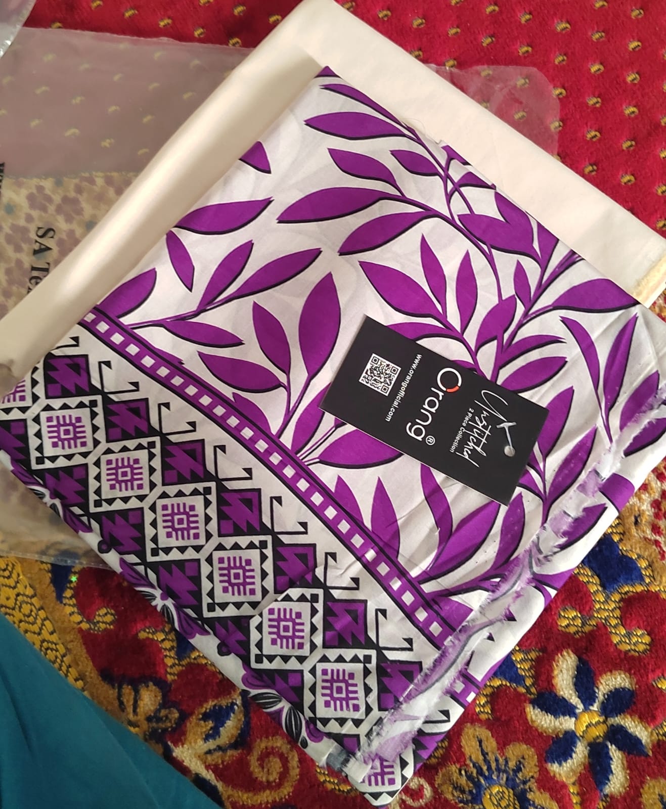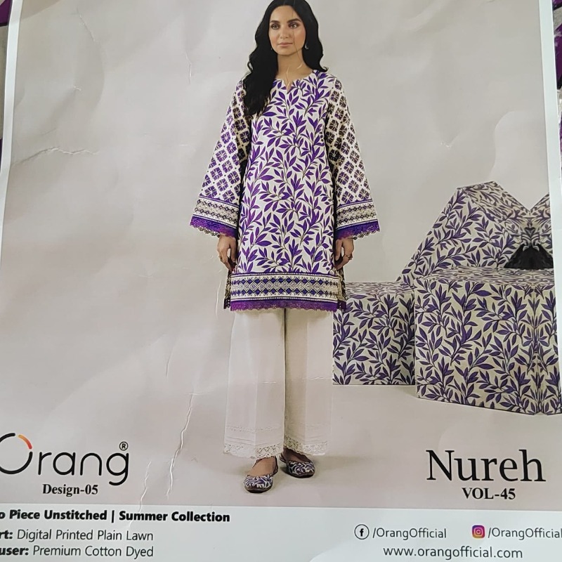 Embrace the summer breeze with this striking 2-piece unstitched suit from the Orang Nureh Vol: 45 Summer Collection.