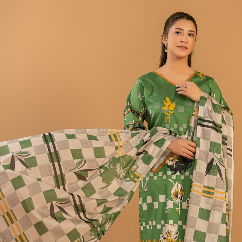 LIKE A TRANQUIL MORNING SKY, THIS LIGHT BLUE ENSEMBLE RADIATES SERENITY WITH ITS GORGEOUS PRINT. THE PRINTED DUPATTA FLOWS LIKE A SOFT BREEZE, ADDING AN EFFORTLESS CHARM TO THIS DREAMY AND ELEGANT ATTIRE.